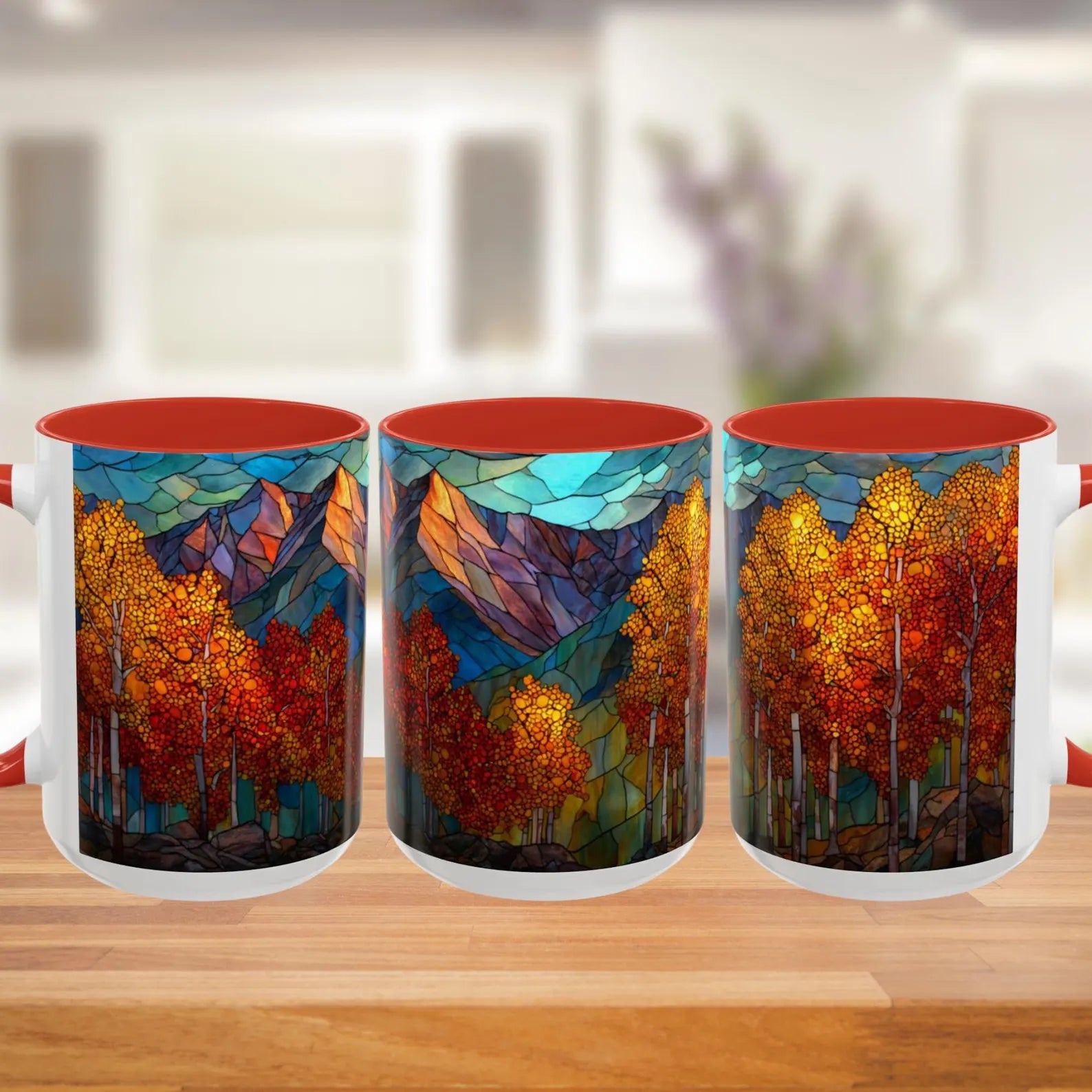 Autumn Mountain Stained Glass Effect Coffee Mug